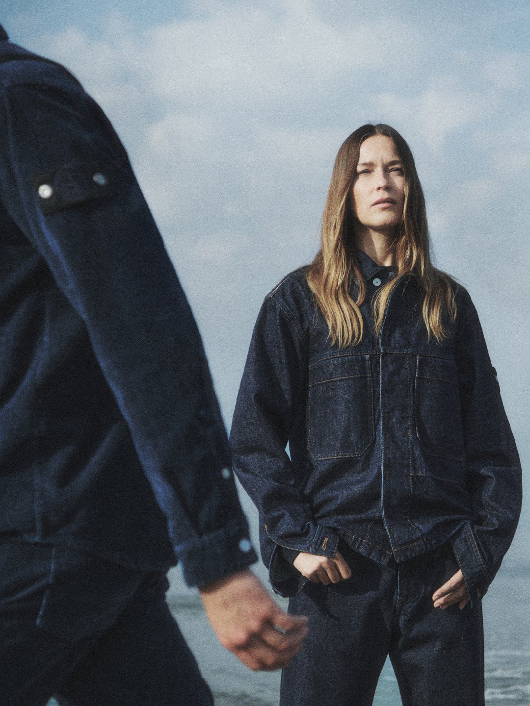 Denim Research applies boundary-breaking experimentation to one of the most iconic fabrics, redefining the possibilities of denim. Each piece is finished with a dedicated black badge with a blue compass logo, as a testament to the singularity of the project. Stone Island pieces finished with a white badge have become true icons at the furthest edge of the brand's technical achievement, distinguished by extraordinary innovations in technology or fabric treatment.