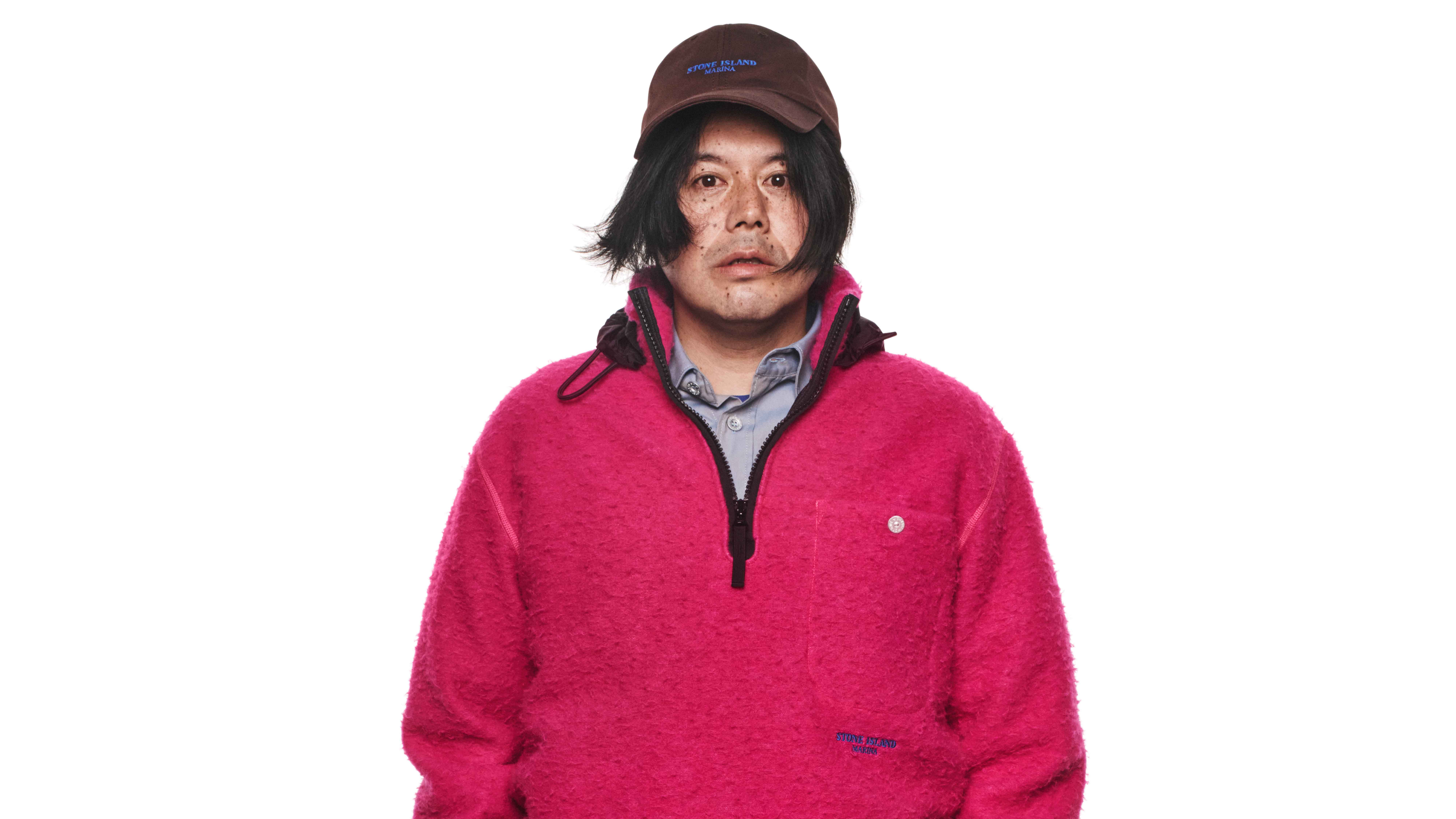 Artist, designer, and DIY'er Chokkan wears 6100025 Ratteen Wool Poly Fleece_Stone Island Marina, as part of the Autumn_Winter '025-'026 campaign.