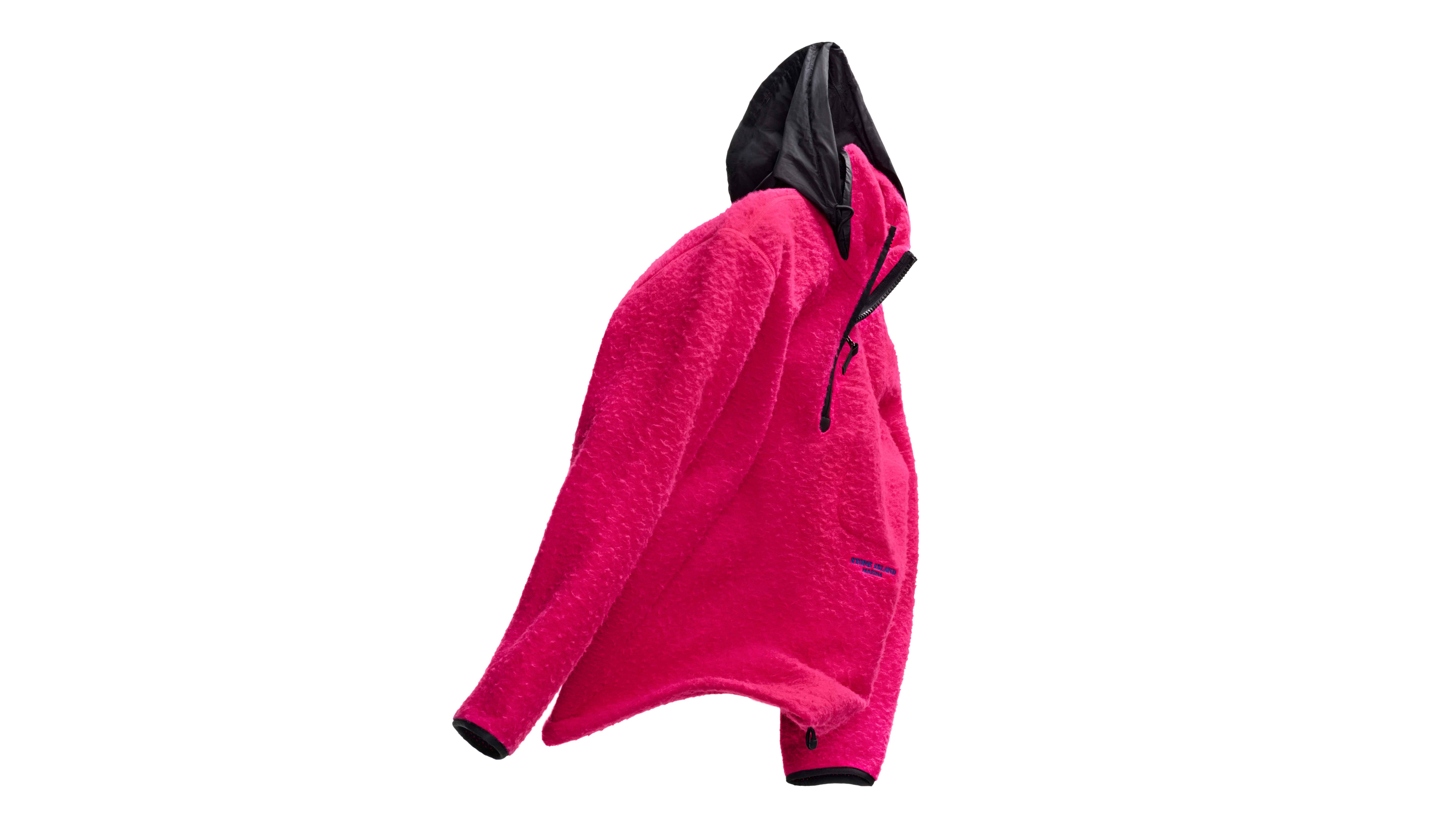Half-zip sweatshirt in ratteen wool polyester fleece. Nylon mesh lining.